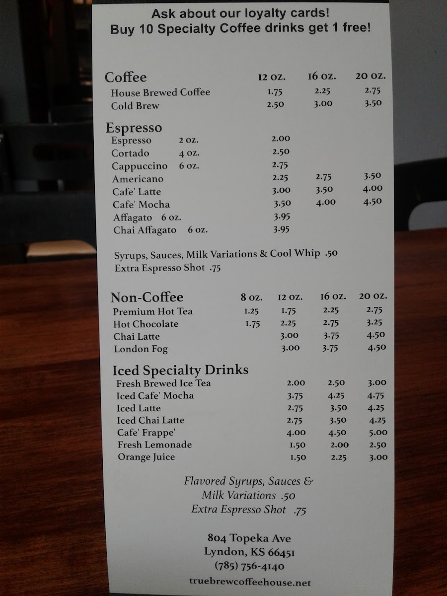 Welcome to True Brew Coffee Co., a charming café nestled in Lyndon, Kansas. This delightful spot is more than just a coffee shop; it’s a haven for both coffee aficionados and non-coffee drinkers alike.